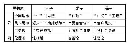考向2:比较法分析孔子孟子、荀子的思想观点有何异同